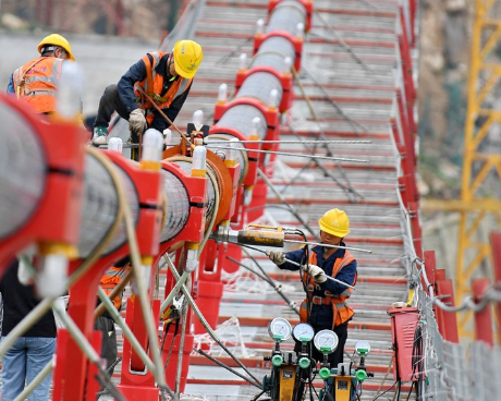 在這壯觀背后,是無數(shù)搭建工人辛勤付出的身影。他們每日都要在高處作業(yè),那高高的橋塔、半空的主纜之上,就是他們的“戰(zhàn)場”。當(dāng)工人們攀爬至數(shù)十米甚至上百米的高空時,腳下是讓人眩暈的高度,耳邊是呼嘯而過的風(fēng)聲,每一個動作都必須小心翼翼。